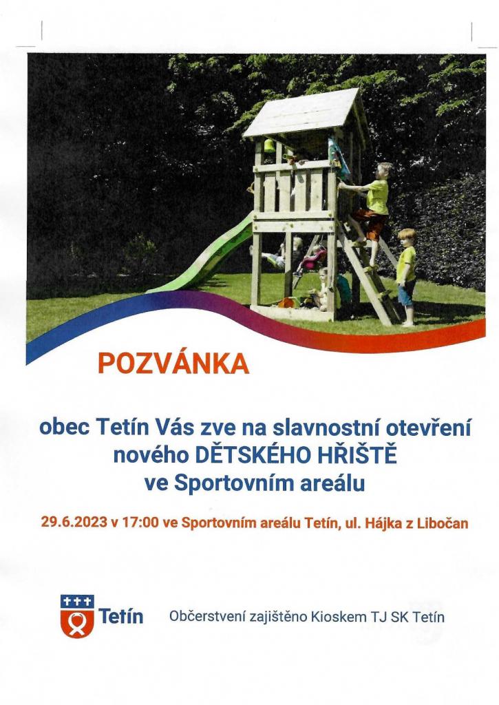 29.6. 2023 se bude otevírat NOVÉ DĚTSKÉ HŘIŠTĚ na Tetíně